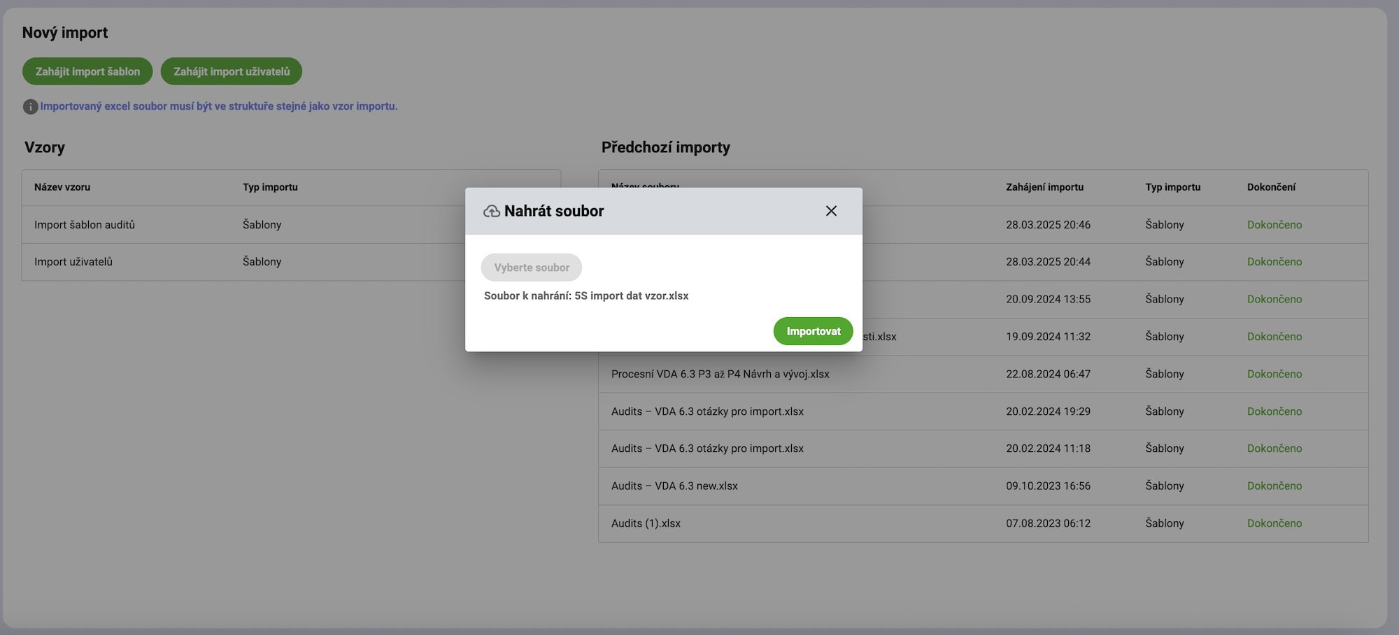 Snadno importujete otázky auditů, které máte v excelu. V případě, že je máte v nestrukturovaném formátu, kontaktujte nás, pomůžeme Vám.